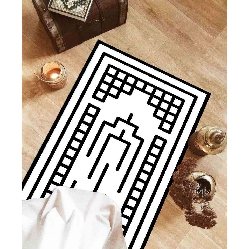 White Islamic Prayer Rug: Religious Printed Rug, Mosque Decor,With Pile Soft Rug