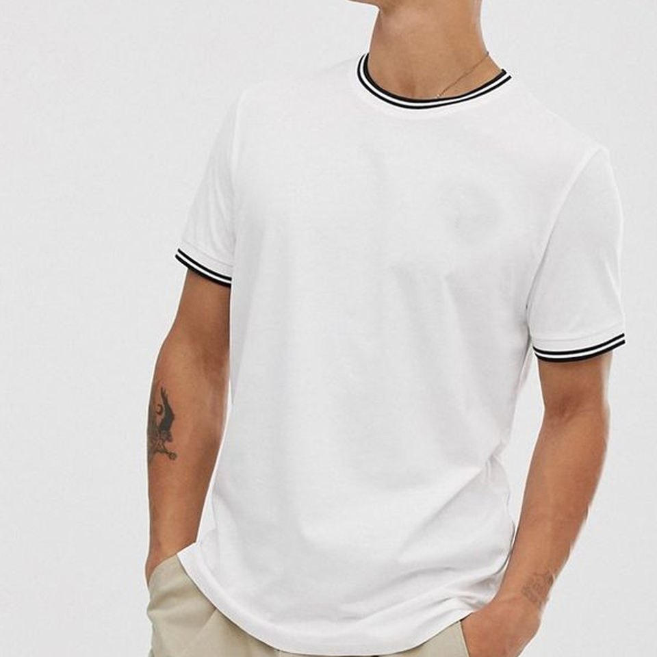 White Jersey Ringer TShirt Classics Men's Ringer Tee T-Shirt Men's Short-Sleeve Straight Crew Neck Cotton Fitness T Shirt