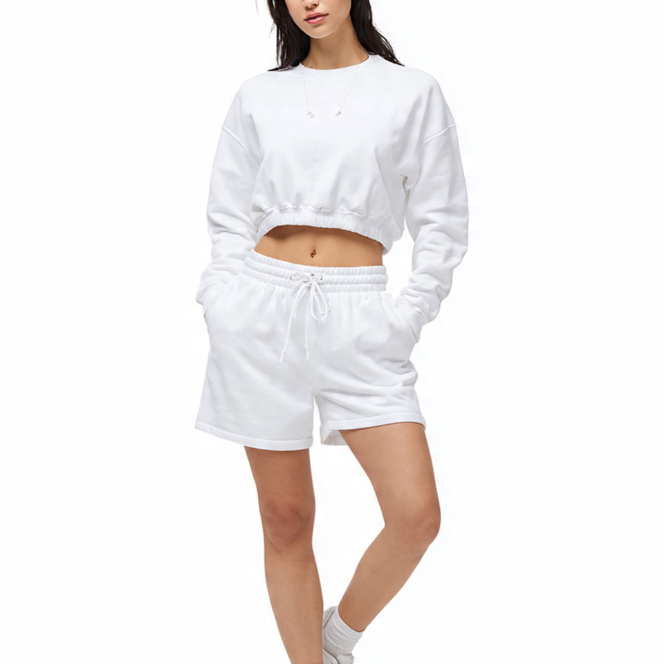 White Jogger Fleece Shorts Sets Women Crop Sweatshirts Sweat Shorts Two Piece Set Winter Streetwear Fleece Jogger Set Ladies