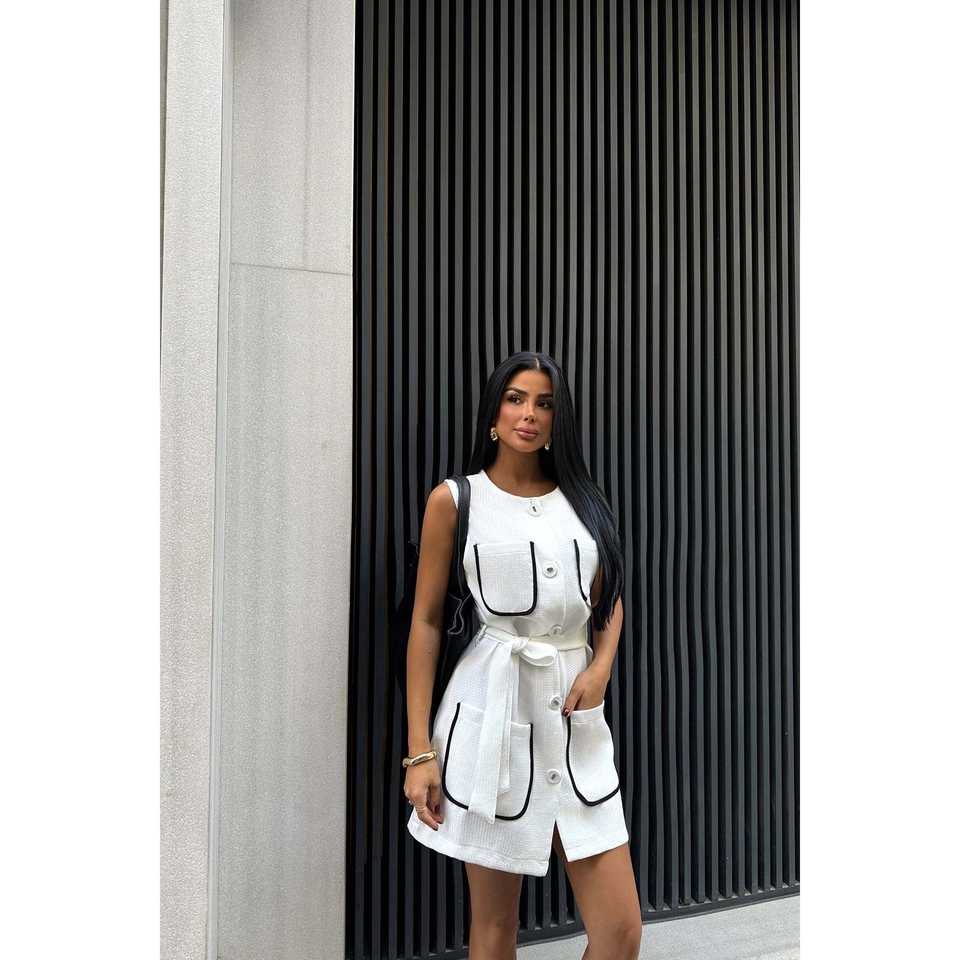 Women's Black and White Snakeskin Patterned Unlined Crepe Dress Yy101005
