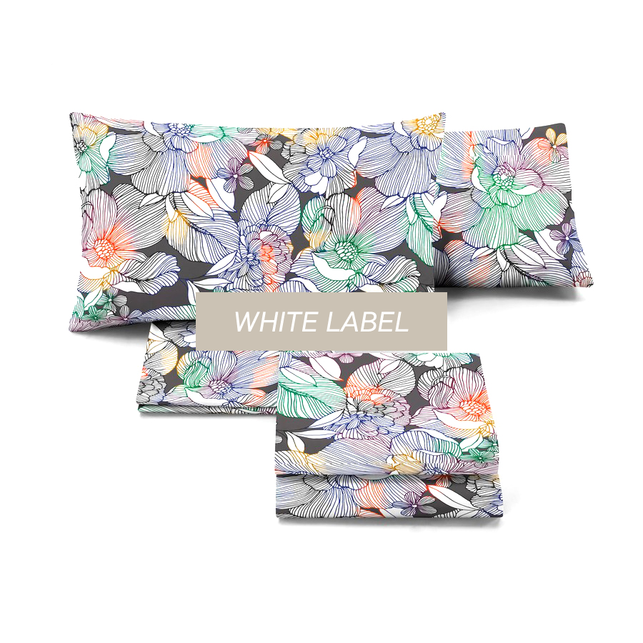 White Label Pure Cotton Sateen Fabric Bedding Sets Dark Khaki Digital Printing King Size Fitted Sheet 2 Pillowcases Made Italy