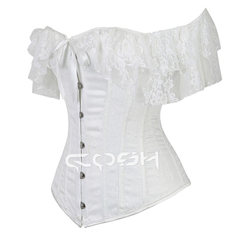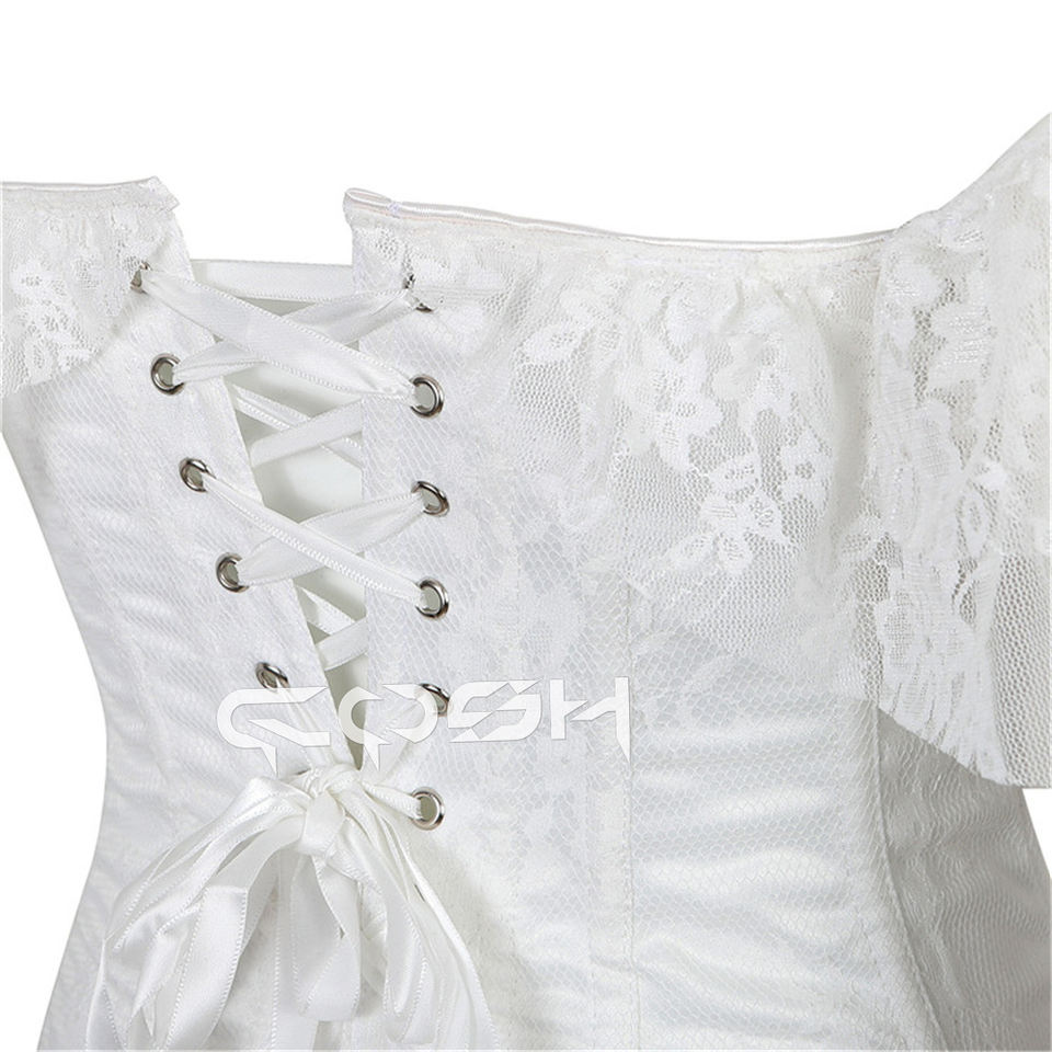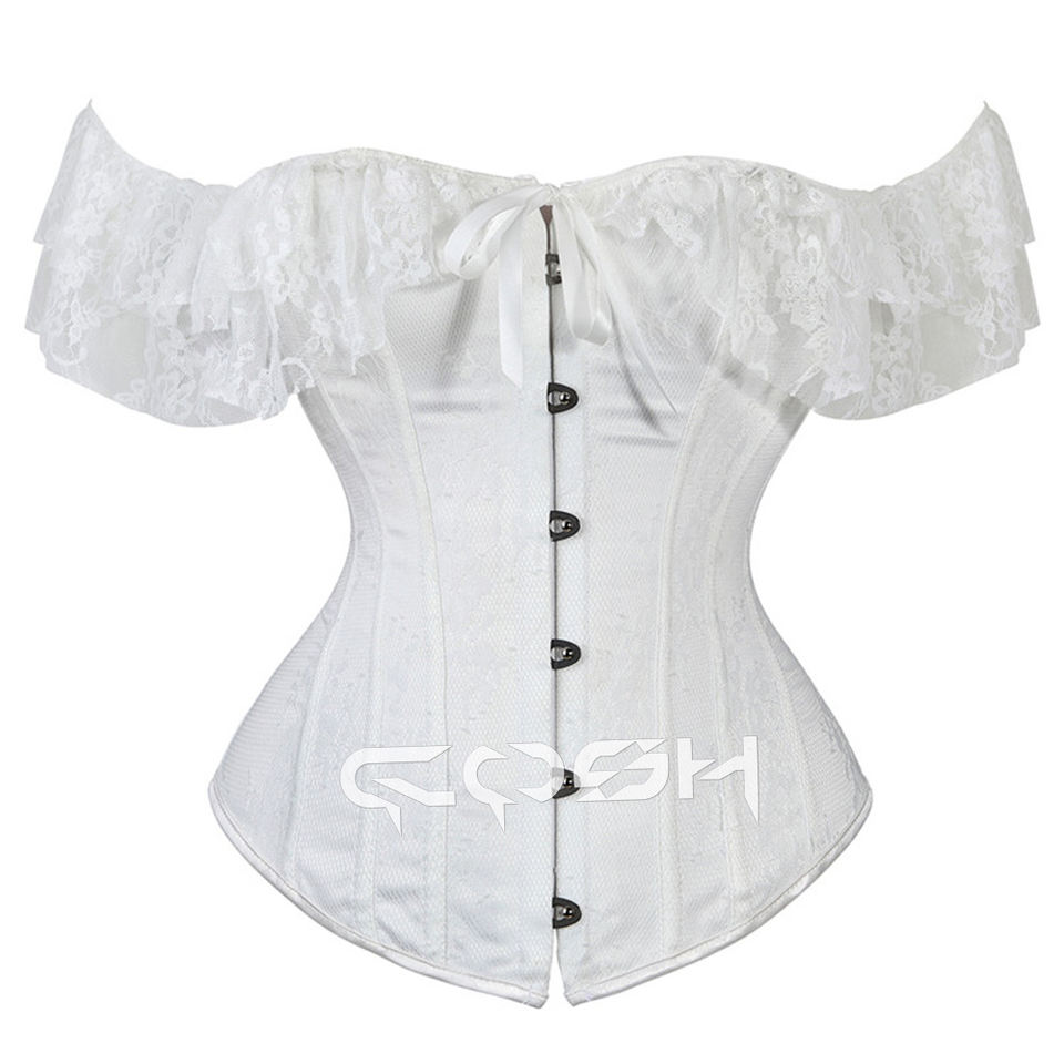 White Lace Overbust Wedding Corset with Off Shoulder Sleeves | Elegant Bridal Corset Top for Women