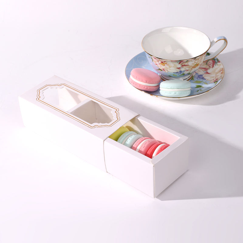 White Luxury Sliding Out Open Cardboard Paper Packaging Gift Macaron Drawer Box with Window