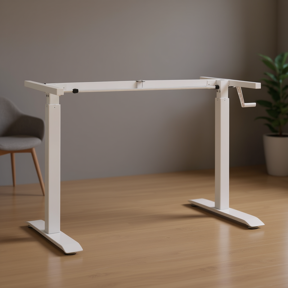 White Manual Height Adjustable Standing Desk Frame Metal Freestanding Office Furniture Minimalist Design