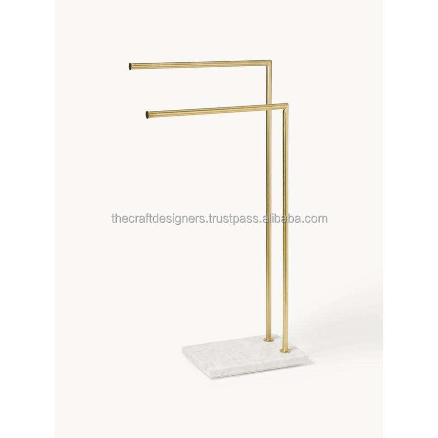 White Marble Base Towel Stand Double Rail Gold Plated New Elegant Towel Holder and Rail Hot Selling Bathroom Towel Rack Hot Sale