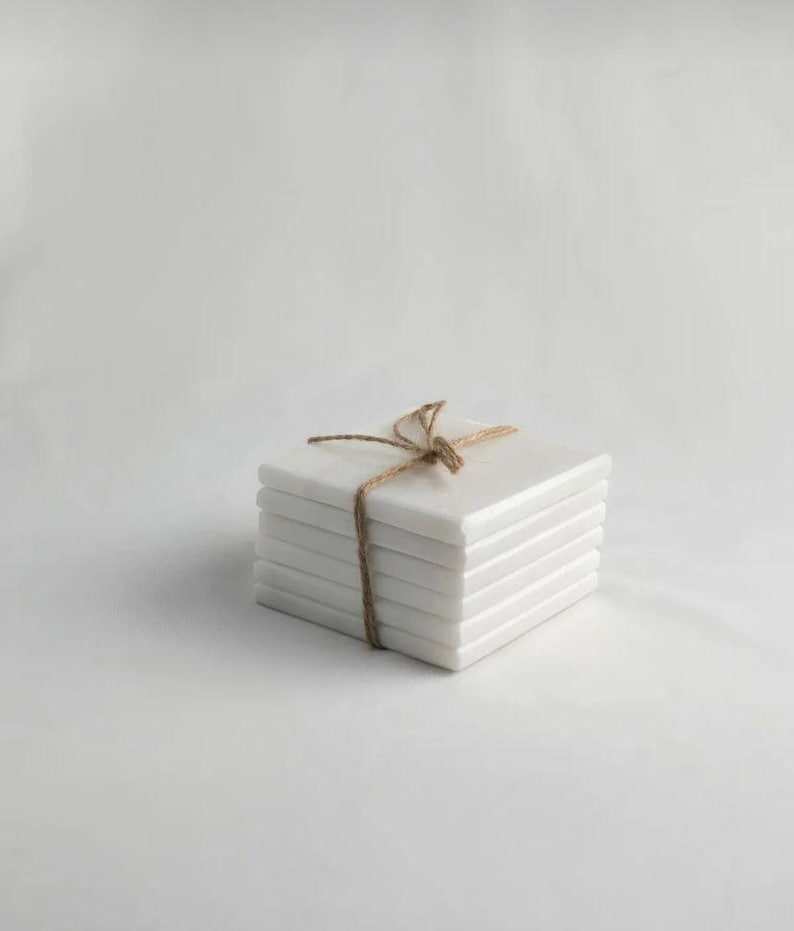 White Marble Coaster Set Handcrafted Natural Stone Drink Coasters For Modern Home Decor