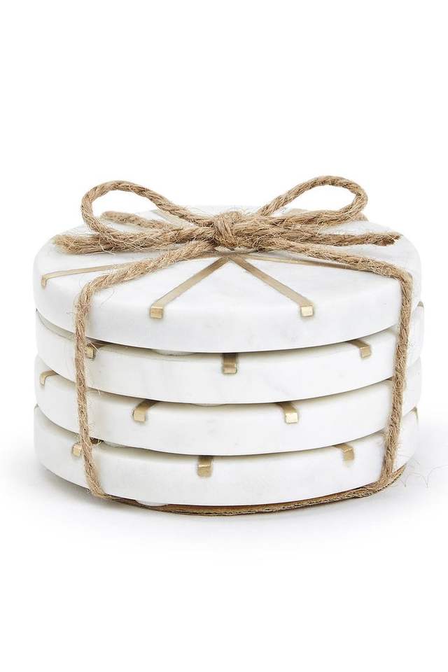 White Marble Coasters Set of 4 Real Natural Stone Luxury Modern Aesthetic Eco-Friendly Waterproof Durable Kitchen Cup Coasters
