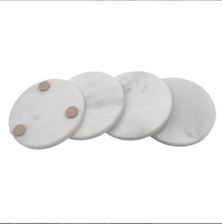 White Marble Coasters Set of 4 Real Natural Stone Round Coasters Luxury Modern Aesthetic Semi Absorbent Cup Coasters for Drinks