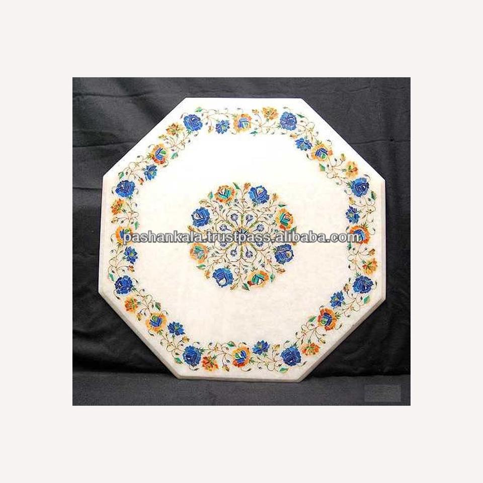 Product Name:White Marble Flower Inlay Table, Pietra Dura Coffee Table Top