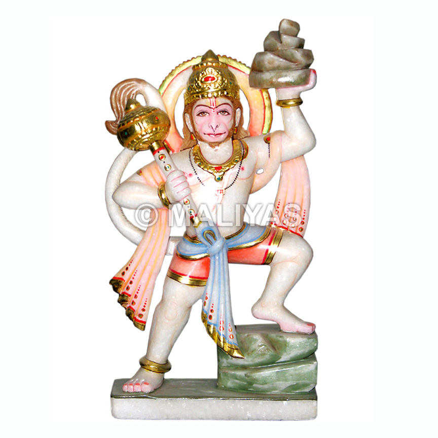 White Marble Hanuman Murti | Veer Hanuman Ji Statue for Home & Temple