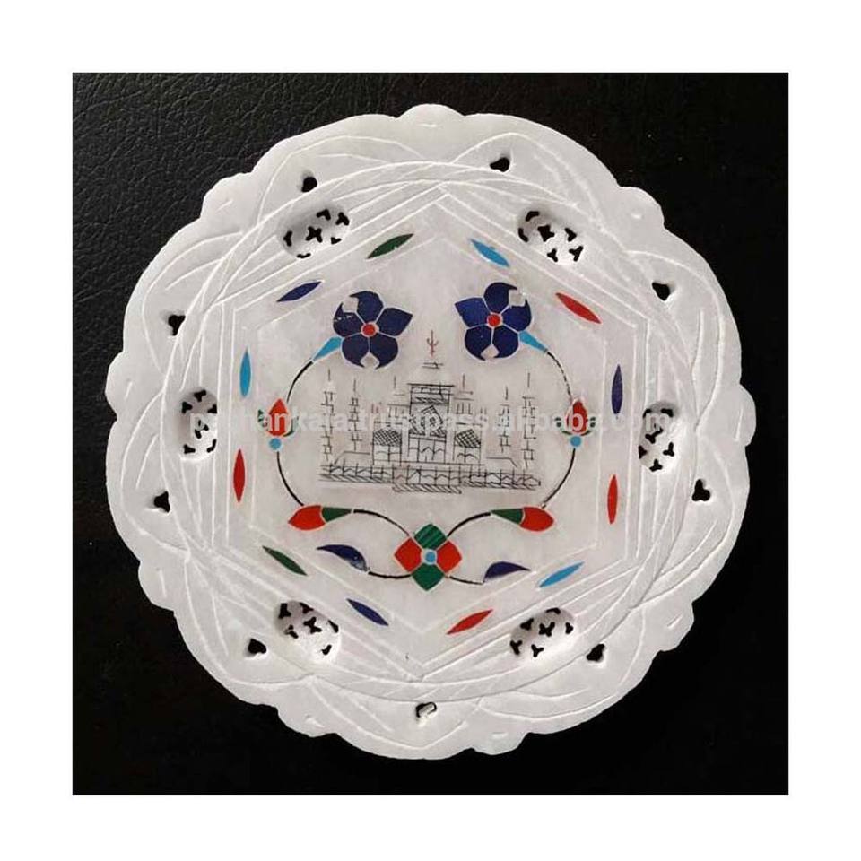 Product Name:White Marble Inlay Work Plate With Beautiful Middle Taj Mahal Painting