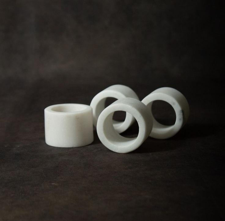 White Marble Napkin Rings Set of 4 Handmade Cylinder Serviette Holders for Dining Table Wedding Party Classic Natural Stone Deco