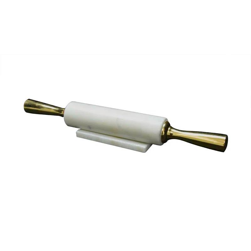 White Marble Rolling Pin with Gold Handle for Kitchen Decor Baking Pastry Dough Preparation And Premium Gift Idea From India