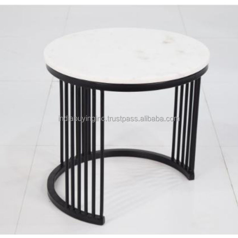 White Marble Top Coffee Table With Black Iron Tube Legs Base Brass Finish Round Shape Top Coffee Table for Home coffee table
