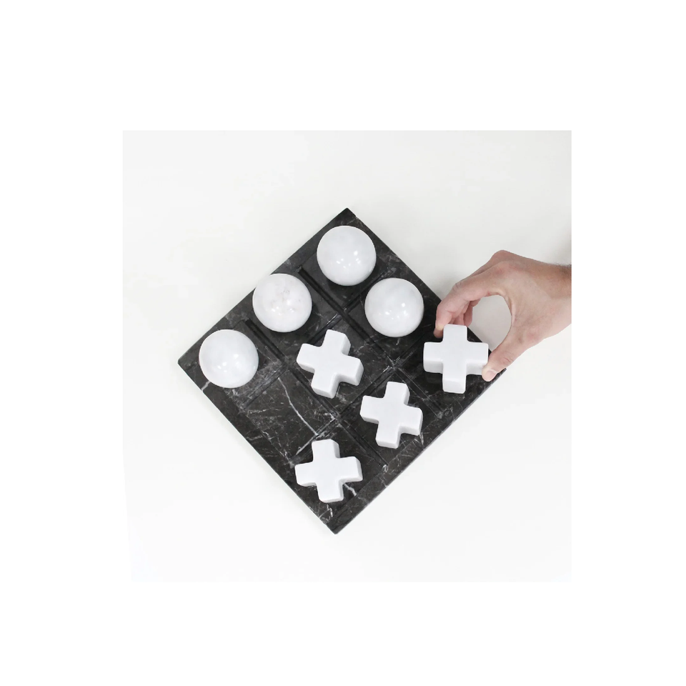 White Marble XO Noughts and Crosses Game Tray Op O's and X's Signs Tic Tac Toe Lucite Game 10 Pieces