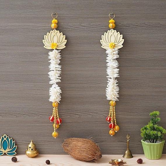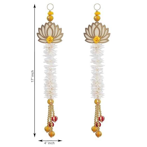 White Mdf Lotus Design Artificial Flower Hanging for Door and Pooja Decor Pair Of 2 Garlands For Backdrop Decoration
