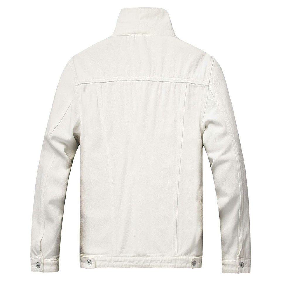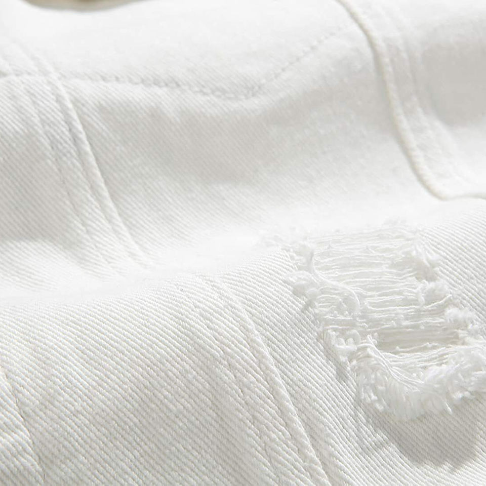 White Mens Winter Jacket Streetwear Windbreaker Distressed Ripped Denim Jean Jackets and Slim Fit Winter Outerwear Jackets