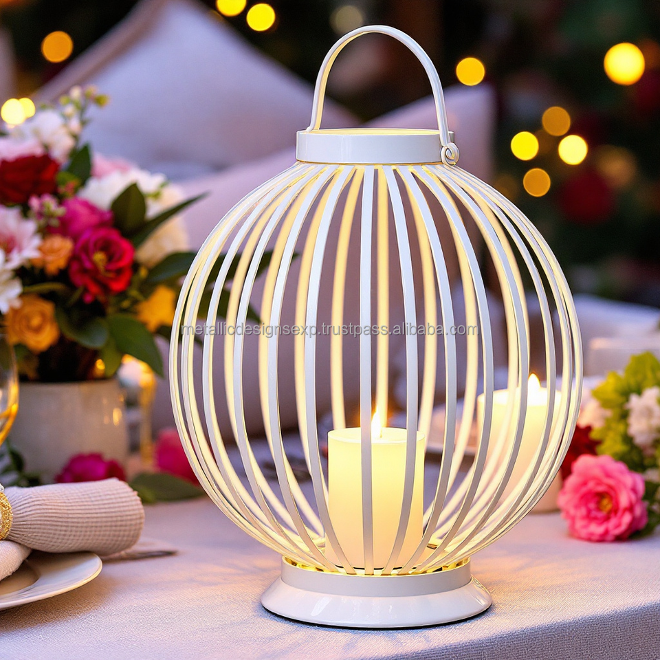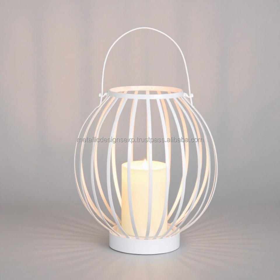 White Metal Hurricanes Lantern with Realistic Candle Jar for Unique Modern Indoor/Outdoor Decor, Perfect for Home, Event Styling