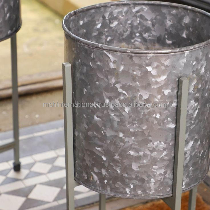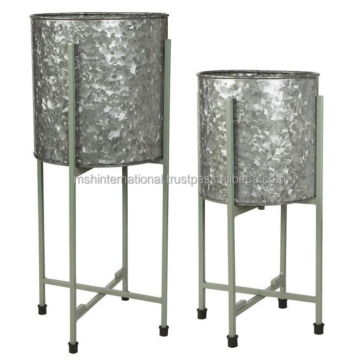 White Metal Planter Set with Gold Cross Stand Set of 2 Flowers and Plants Patio Garden Decoration Indoor Use