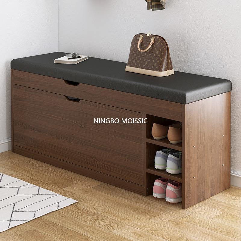 White Modern PU Bench Shoe Storage Rack Cabinet with Seats Shoe Changing Stool Bench