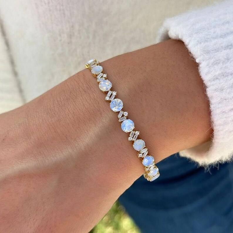 White Moonstone multi fire Tennis Glowing Expansive Bracelet Crafted