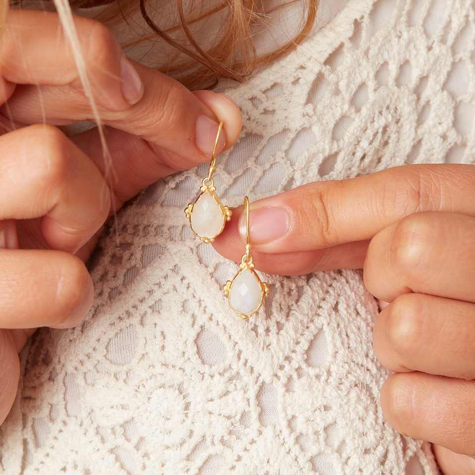 White Moonstone and Matt Gold Drop Earrings 925 Solid Sterling Silver Moonstone Plain Cab Earring Fancy Drop Post Earrings Gift
