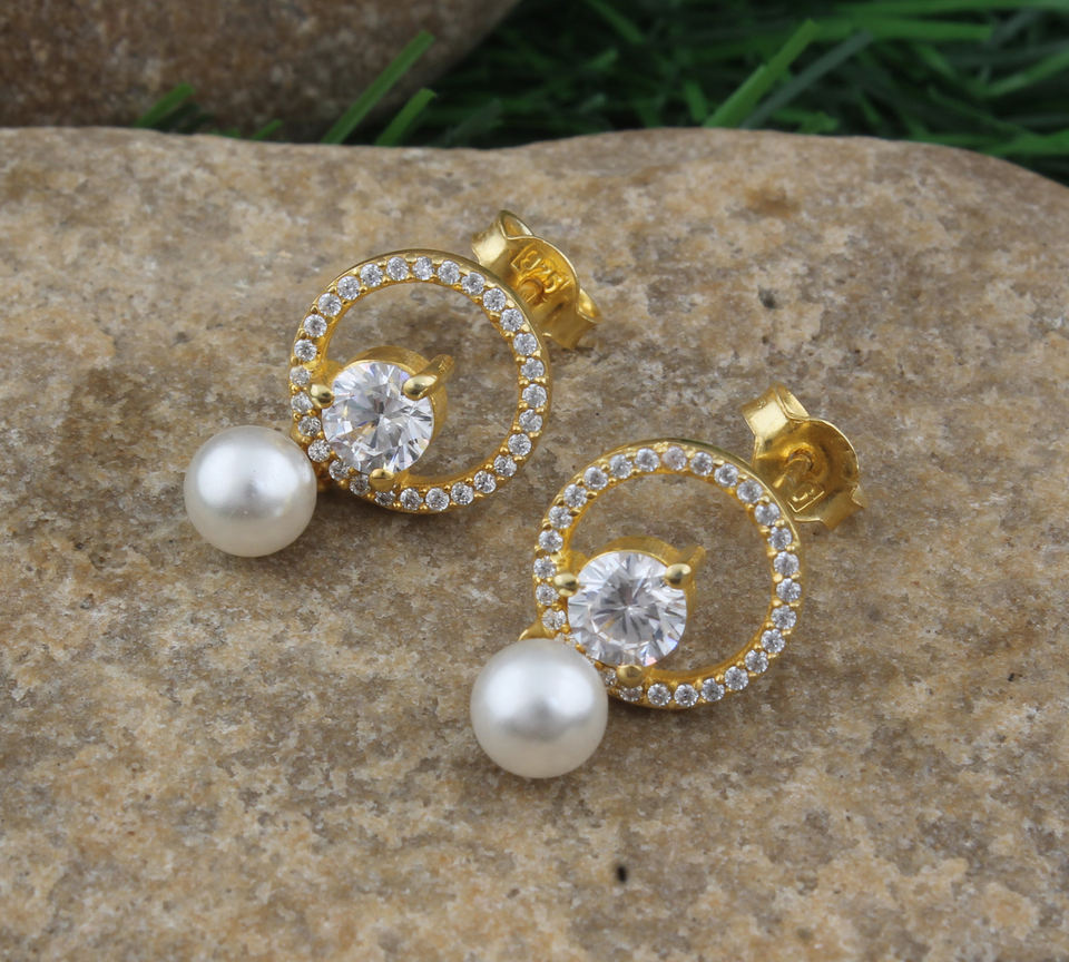 White Pearl CZ Earrings 925 Sterling Silver 18K Gold Plated Luxury Drop Earrings Women Party Gift Wholesale Jewelry