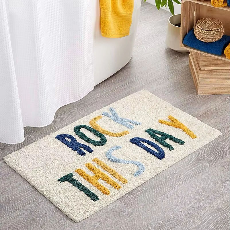 White Multi ROCK THIS DAY Wholesale Custom Bath Mat Quick Dry Designer Bath Rugs Cotton with Machine Made Technics for Bathrooms
