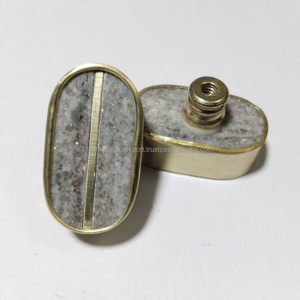 White Natural Oval Marble Door Knob Brass Frame Adjustable Cabinet Pulls Handles Furniture Hardware for Wardrobe Dresser Drawer