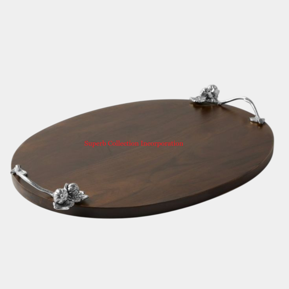 White Orchid Handle Hotel Kitchen Ornaments Tea Coffee Serving Tray New Elegant Design Wooden Tray With For Wedding Party Use