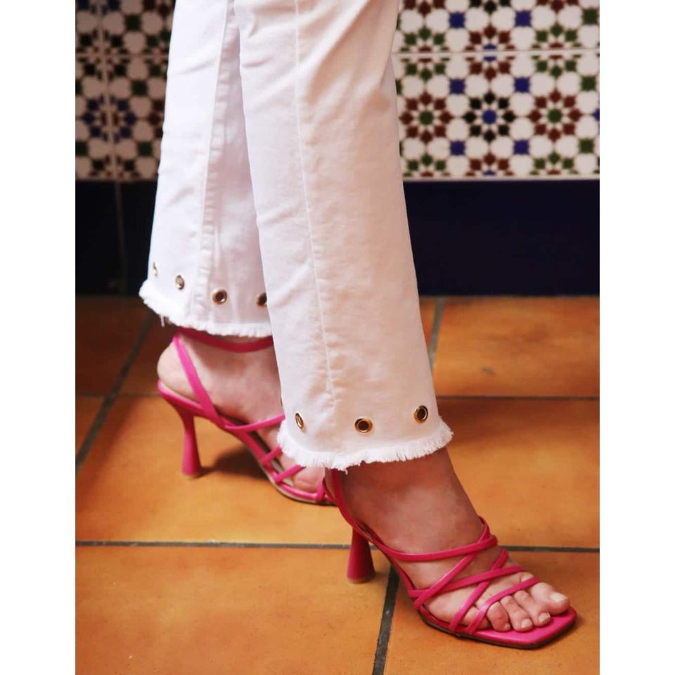 White Oxford Fabric Eyelet Flare Pants for Women Breathable Casual Korean Style XL Wide-Leg Cargo Pants Wrinkled Mid Colored