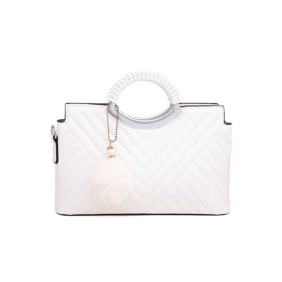 White P35902 Formal Hand Bag Elegant Square Bow Pattern Evening Clutch Purse with Chain Decoration for Parties Weddings