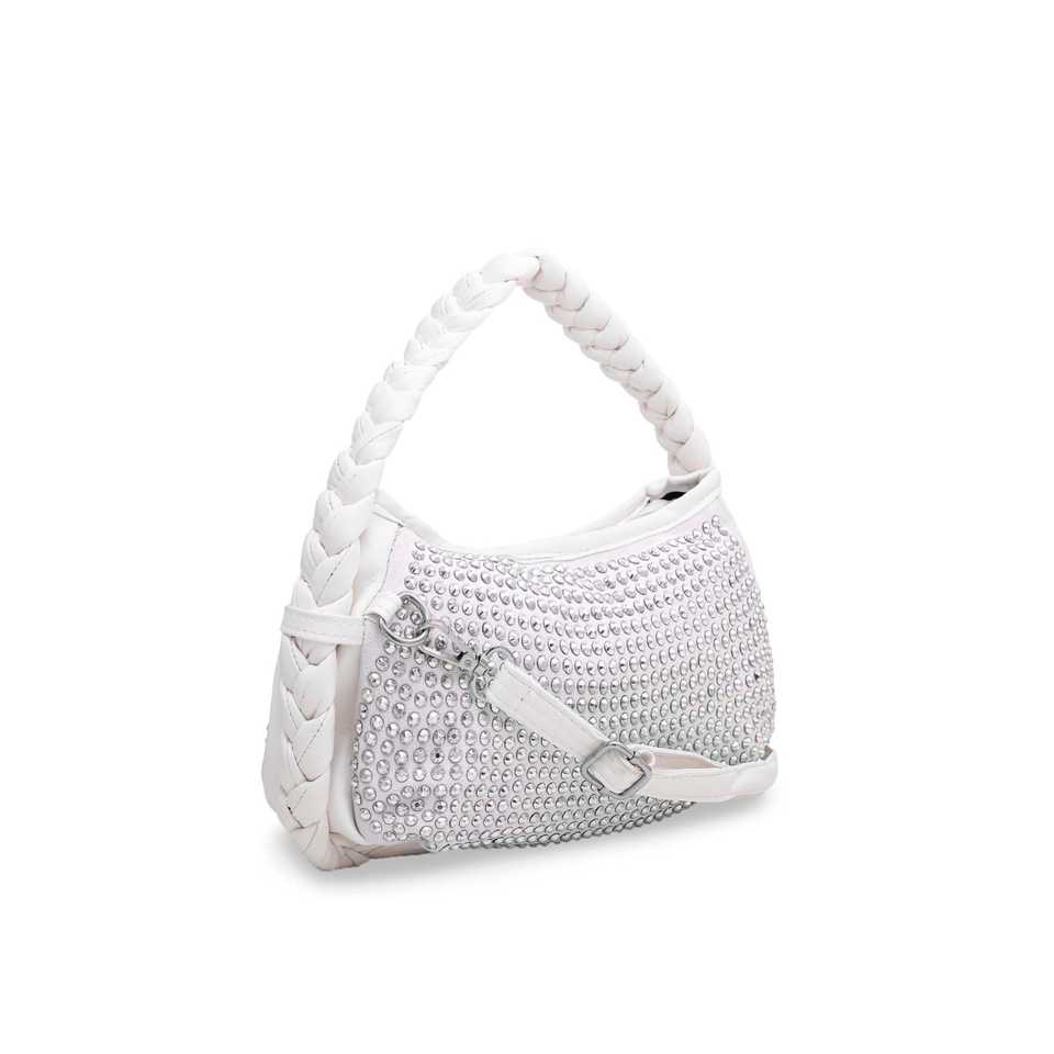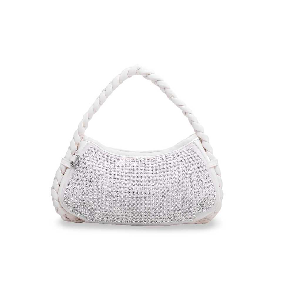 White P36117 Lady Fashion Shoulder Bag Single Handle Zip Closure Candy Pattern Portable for Summer Winter Spring PU Polyester