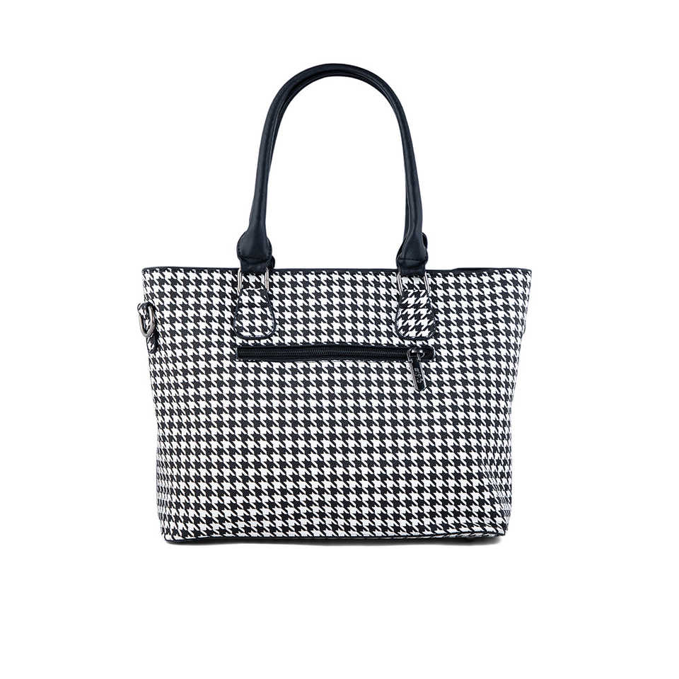 Keina Black Single Compartment Interchangeable Double Strap Handbag with Stone Embroidery and Clip Closure