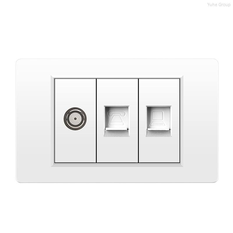 White Touch Panel Durable PC Wall Rj11 Telephone Socket JC Jack Combination Socket Switch 10A
