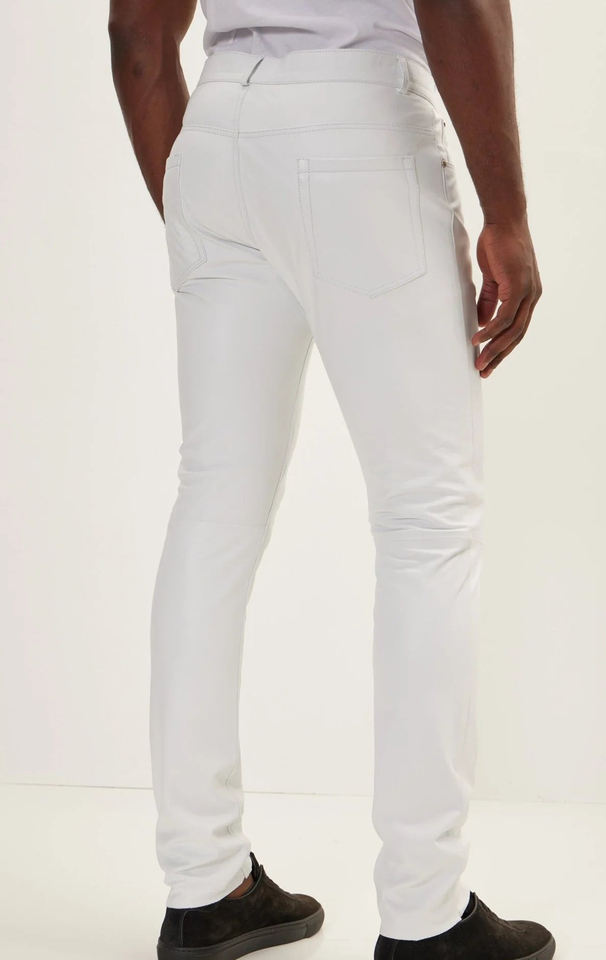 White PU Leather Vintage Pants Men Street Style Fashionable Leather Trouser Pant Mens Button Down Custom Leather Pants Men's