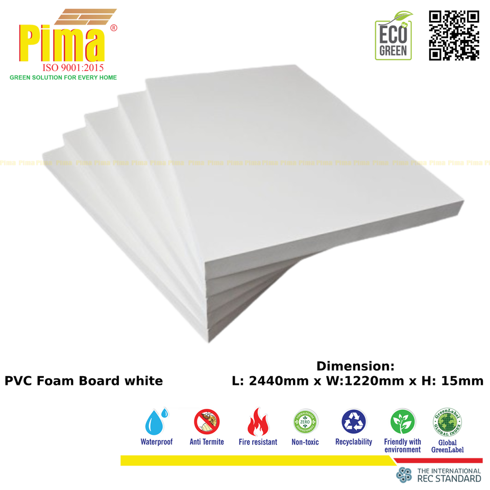 White PVC WPC Rigid Plastic Panels 18mm Thick 0.6 G/cm3 Density Anti-Termite Furniture Foam Board Sheet for Furniture Coating