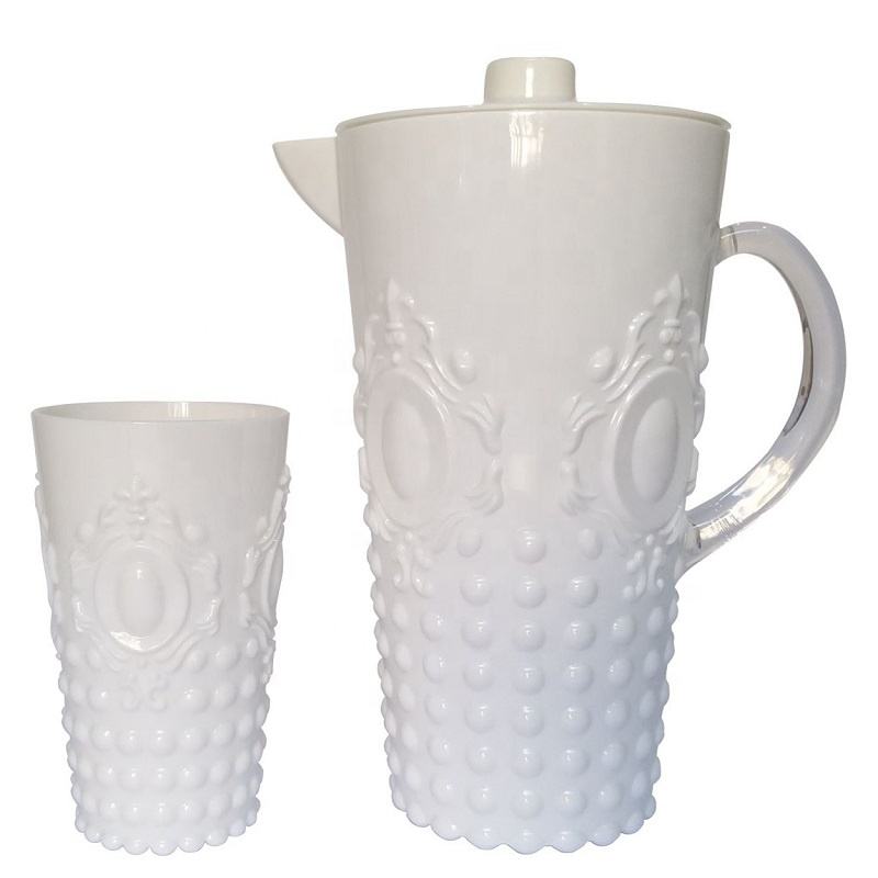Jack Worth Eco-Friendly White Plastic Art Decor Vintage Coffee & Tea Drinkware Set with Tumbler & Water Jug