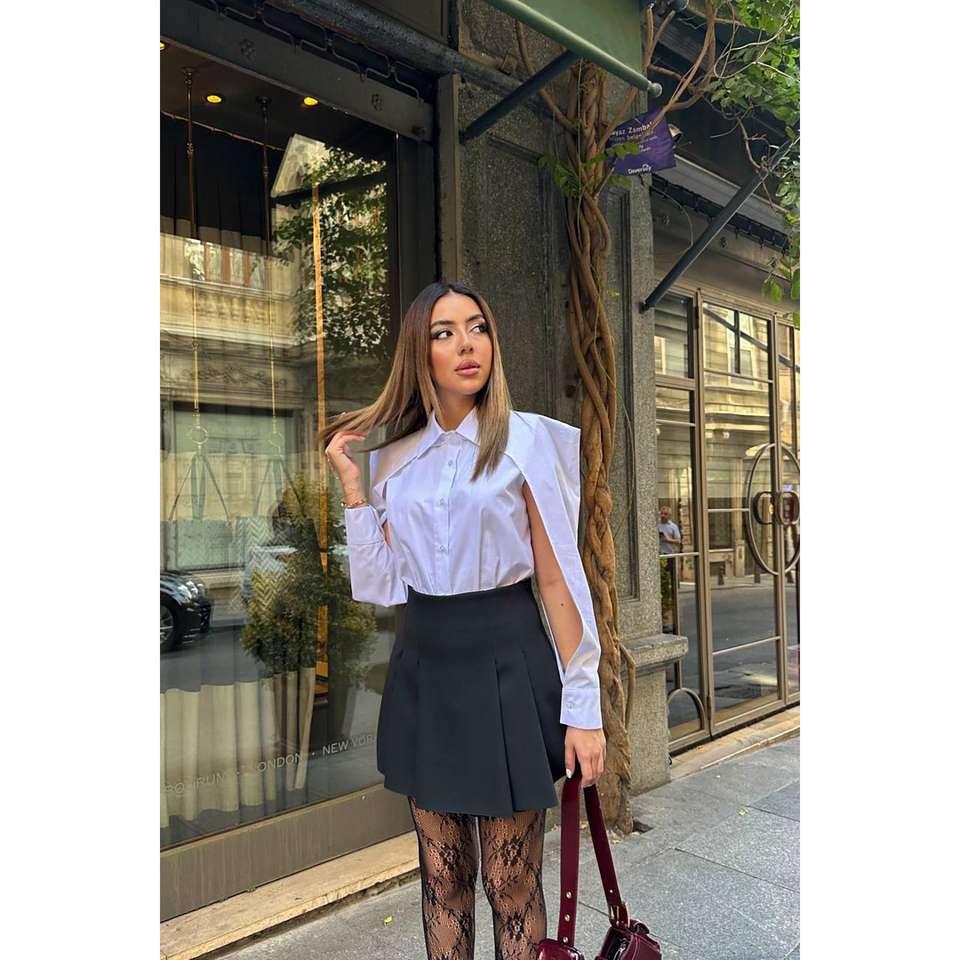 White Poplin Shirt Women Classic Cut Out Sleeve Detail Office Button Down Blouse