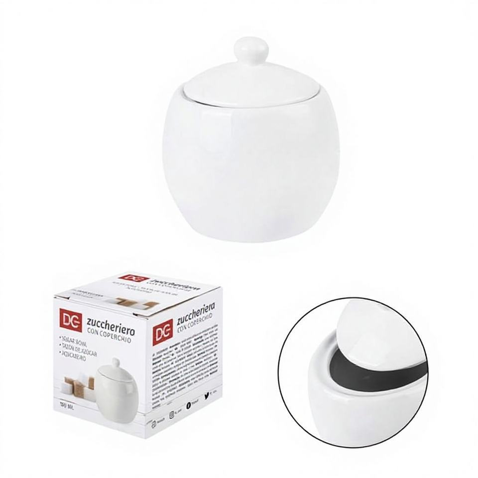 White Porcelain Sugar Bowl Luxury Design 8 X 8 X 8 cm Small Kitchen Accessory Restaurants Comprising Ceramic Glass Wooden