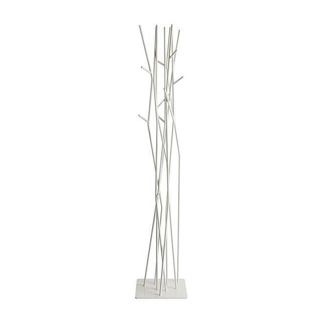 White Powder Coated Coat Rack Stand Hall Metal Standing Floor With Marble Base Tree Bedroom Clothes Hanger