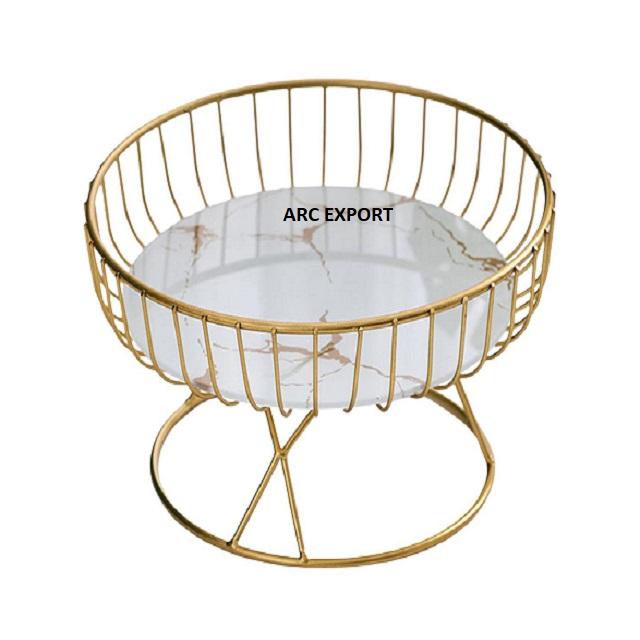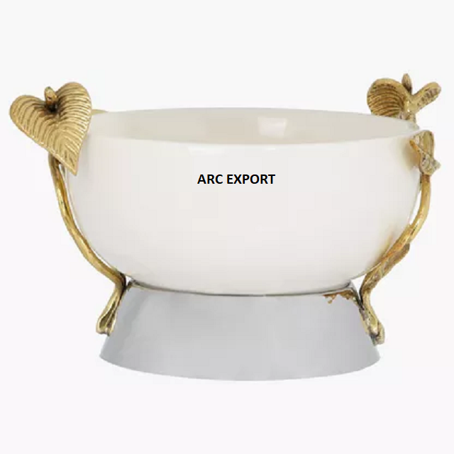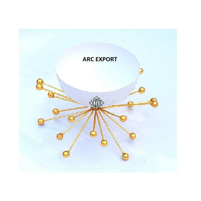 White Powder Coated Metal Fruit and Snacks Bowls With Luxury Gold Color Stand Wedding and Events Dinner and Lunch Serving Bowls
