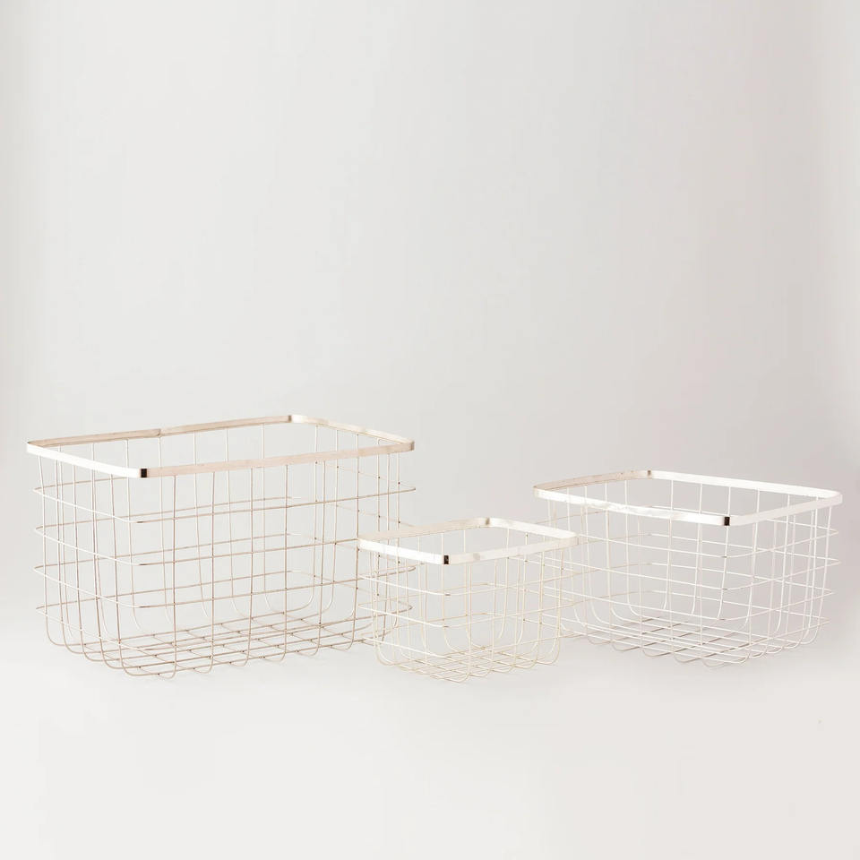 White Powder Coating Finished Iron Wire Basket With Handle Rectangular Shape Living Room Decor Storage Baskets