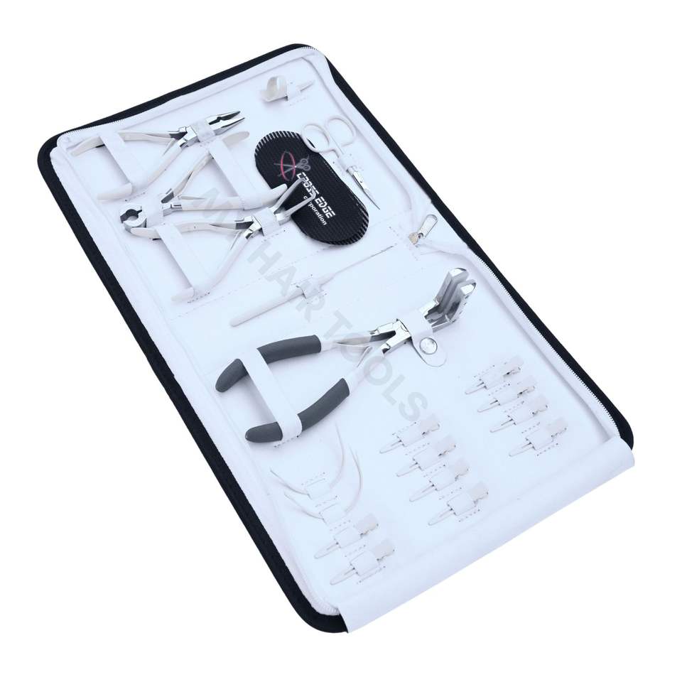 White Professional Hair Extension Applicator & Removal Tools Kit with Micro Bead Plier Tape In Plier Bond Cutter Hook clips Tool