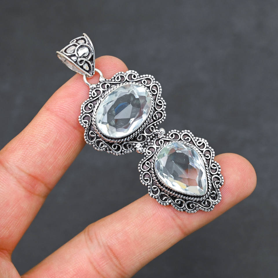 White Quartz Pendant Necklace in 925 Sterling Silver Luxury Style