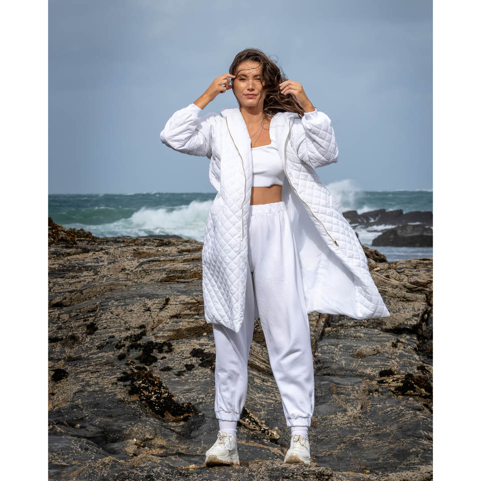 White Quilted Hooded Long Coat Pea Street