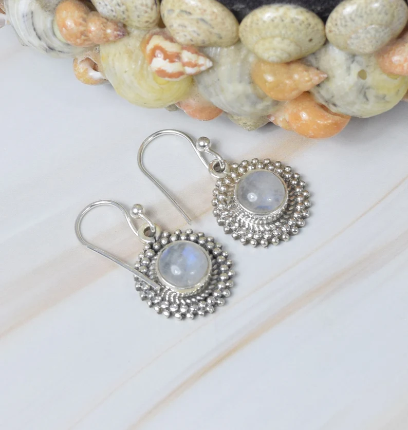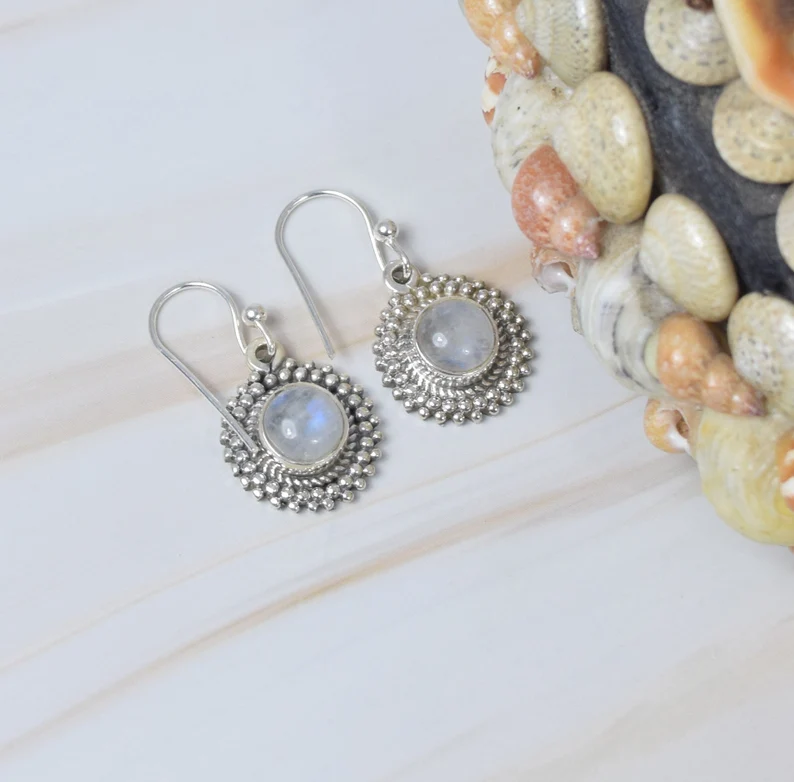 White Rainbow Moonstone 925 Sterling Silver Gemstone 1 Pair Hook Earring Handmade Classic Shape Jewelry Perfect Christmas Gift