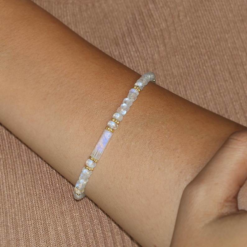 Keyword:White Rainbow Moonstone Beaded Glowing Expansive Bracelet Crafted