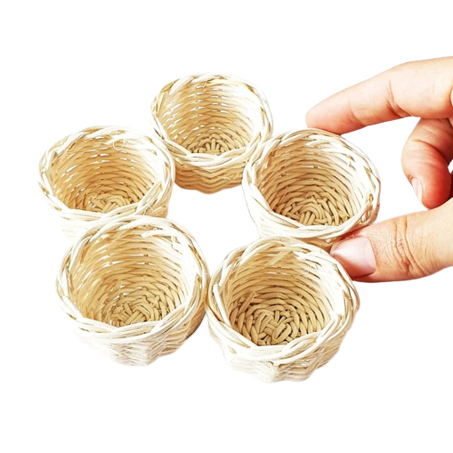 White Rattan Braided Picnic Basket Educational Mini Kitchen Sets Toys for Kids Handcraft Dollhouse Miniatures Baby Toy