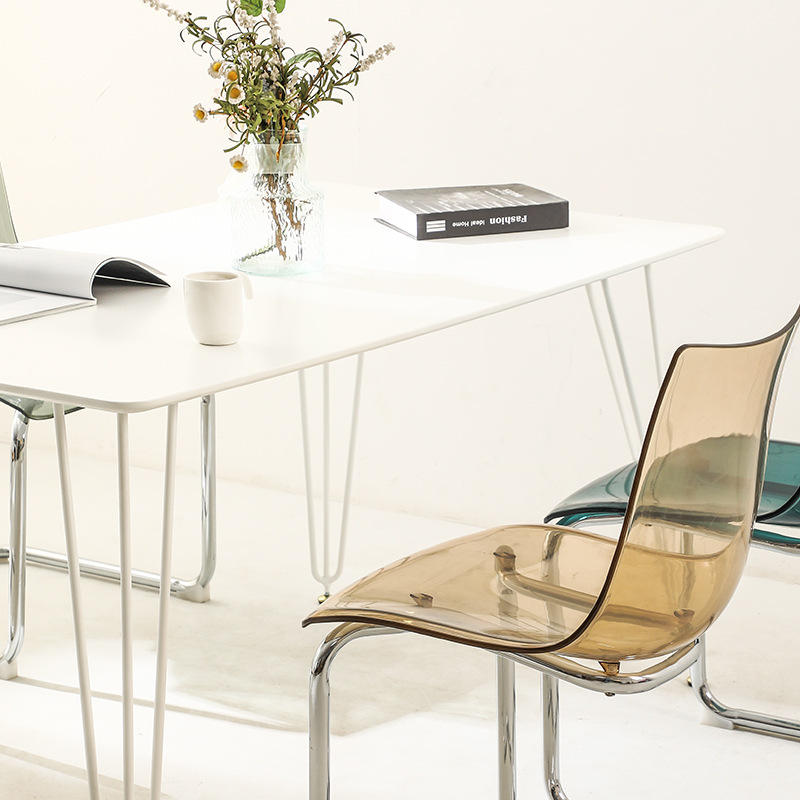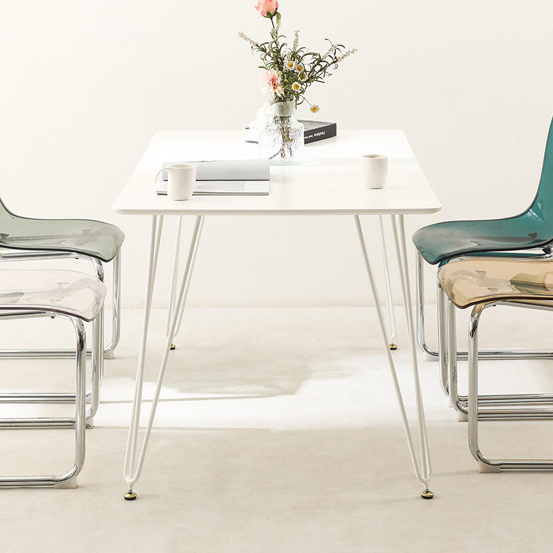 White Rectangular Dining Table Set 4 Piece Iron MDF Space Saving Modern Minimalist Dining Room Furniture